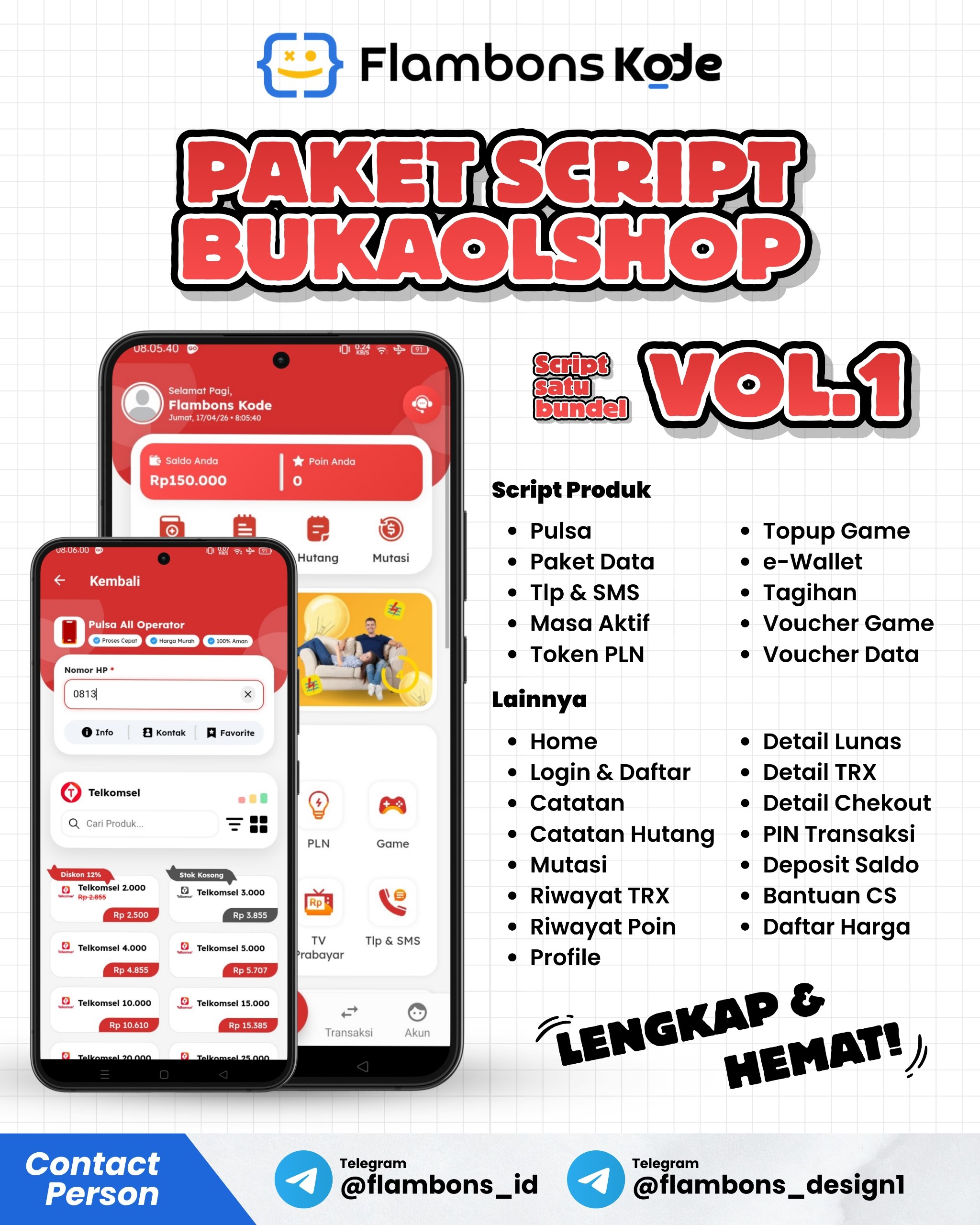 Flambons Kode menyediakan kebutuhan tampilan Bukaolshop kamu dengan harga yang murah dan banyak harga diskon setiap hari...